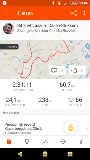De weerman had veel regen voorspeld voor deze paaszaterdag, maar 6 man waren toch op post en trotseerden de miezerige regen. Claudio en Charlotte, onze baankapiteins, hadden toch besloten om de rit te laten doorgaan. Vandaag ging de rit naar Dilsen, maar door de aanhoudende regen werd uiteindelijk beslist de rit in te korten. Proficiat aan de doorzetters!