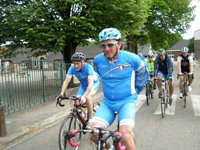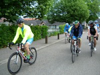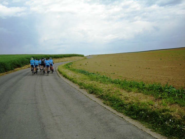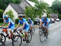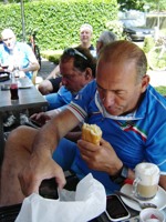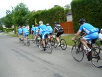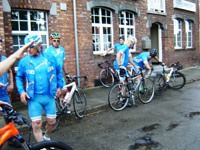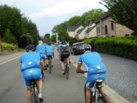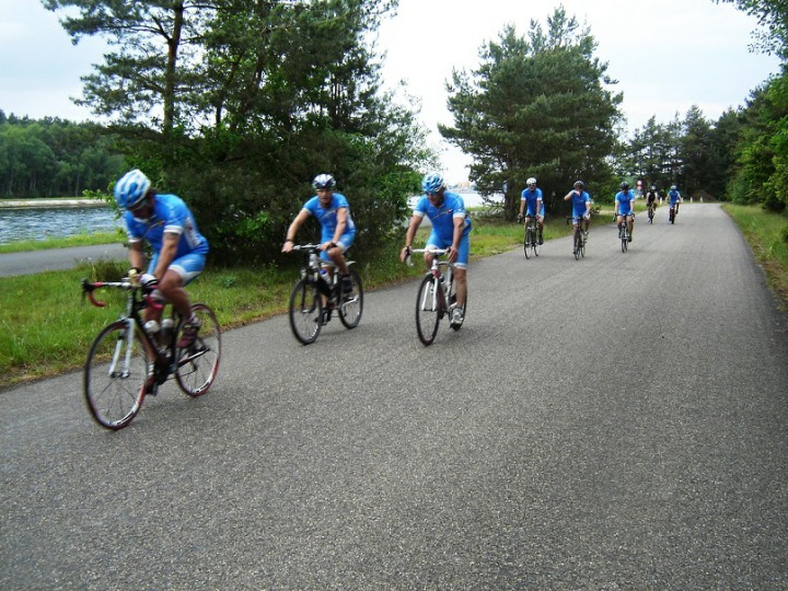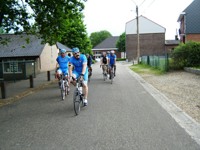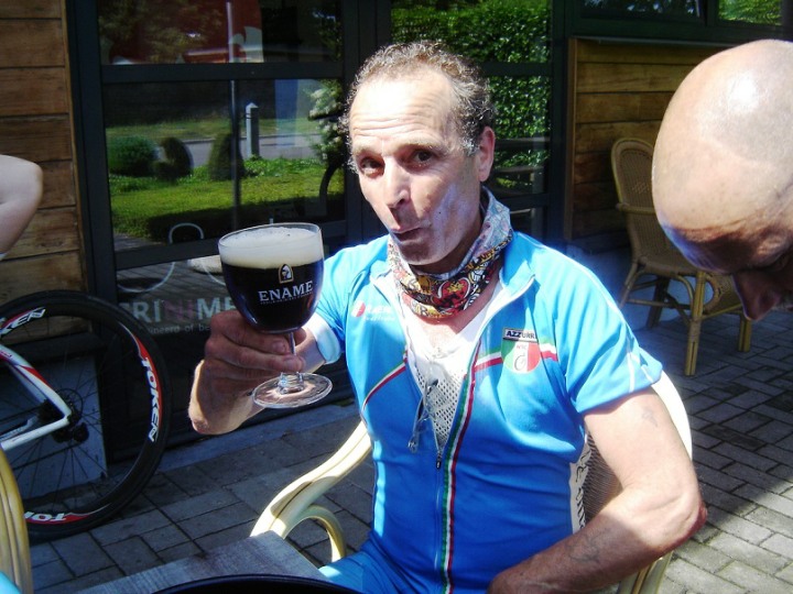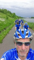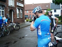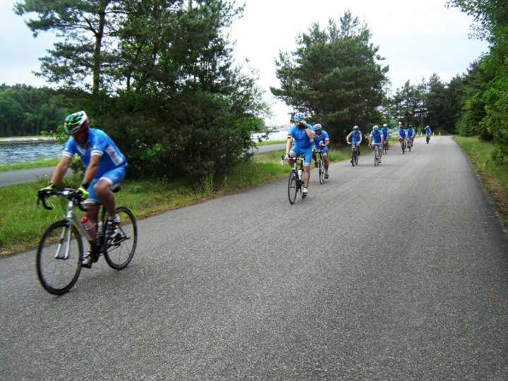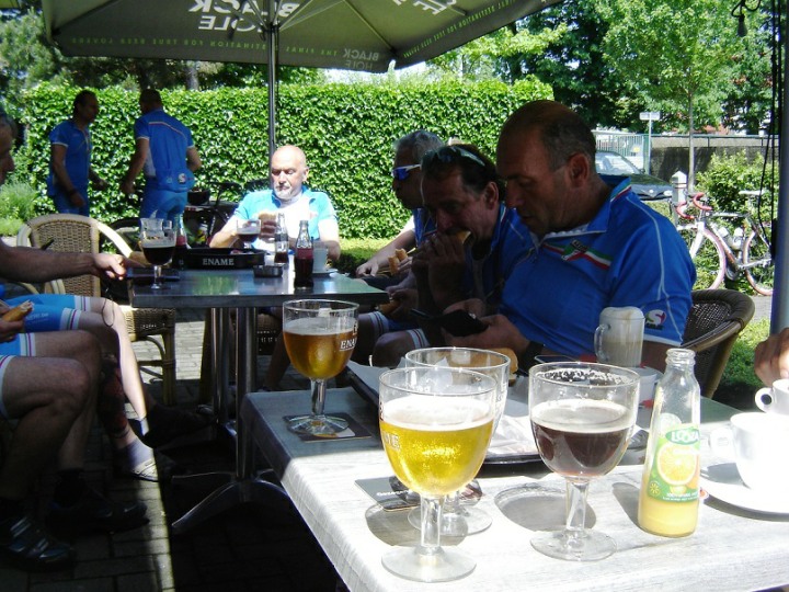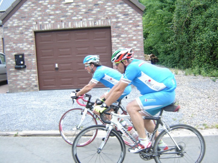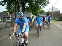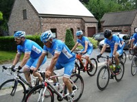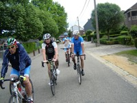 De geplande rit naar Thorn viel vandaag letterlijk in het water; onweders en bliksemschichten vanuit Nederland hebben ervoor gezorgd dat baankapiteins Emidio en Claudio vandaag een ritje in de andere richting improviseerden, nl. naar Bassenge. Met 11 flandriens vertrokken we richting Zutendaal, Gellik en zo naar Bassenge waar we de kleine Lourdes hebben beklommen. Intussen was het weer volledig opgeklaard en de regenjasjes werden weggeborgen. Alain, Donato en Tonino hebben ons bij deze rit regelmatig afgelost. Fijn zo! Donato behaalde vandaag de “bolletjestrui”.
