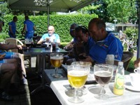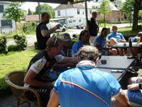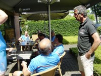 Het zonnetje zorgde voor een leuke sfeer en we keken alvast uit naar de frisse pint en een lekker broodje in ons clublokaal. Daar aangekomen waren we aangenaam verrast om Marino en Theo nog eens terug te zien en wat gezellig bij te praten.