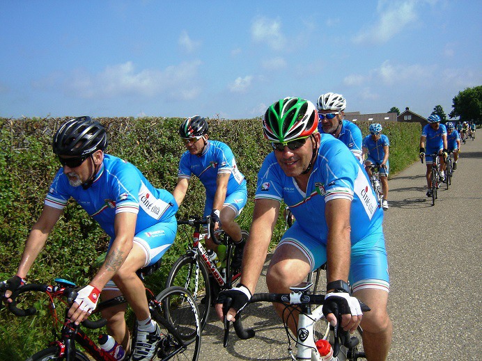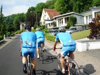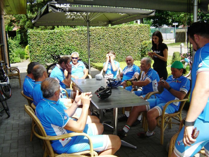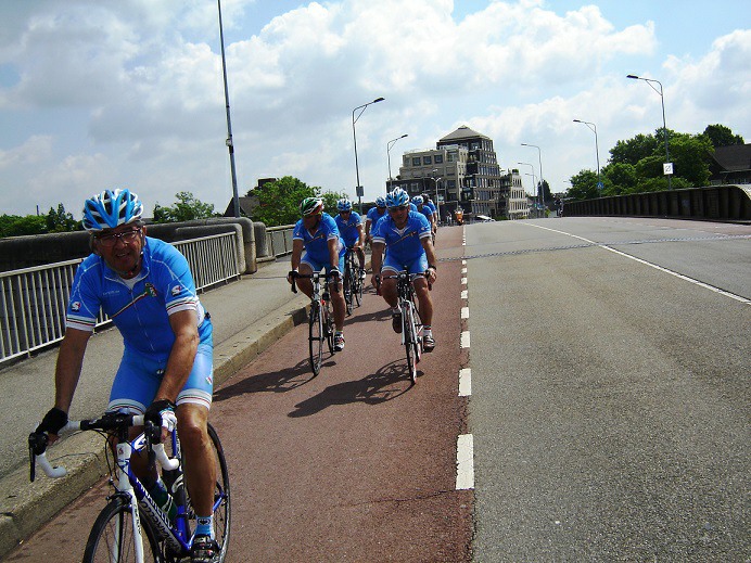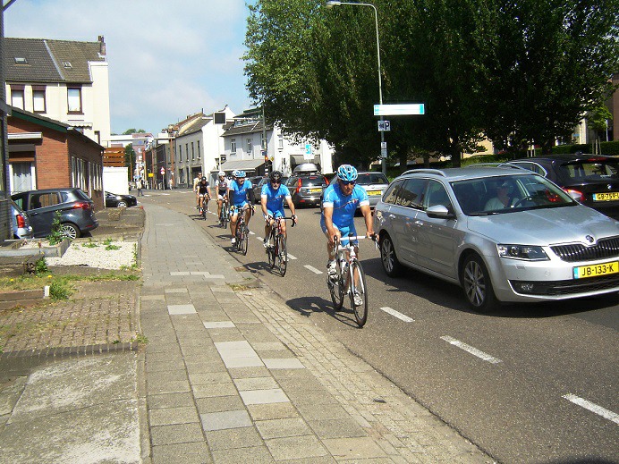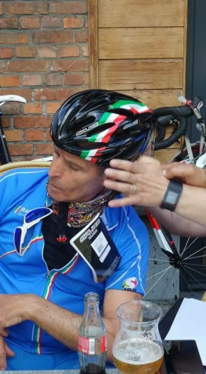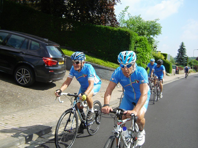 Vandaag weer een mooi uitgestippelde rit van Emidio en Claudio. Via As fietsten we door Maasmechelen en zo Nederlands grondgebied binnen in oud-Valkenburg. We hebben enkele mooie hellingen beklommen zoals de Sibbe; dan de Bemelen af richting Maastricht. Verder door Lanaken, Zutendaal en zo terug naar Genk. Hector verbaasde ons vandaag en hij was niet te stoppen; zijn fiets had immers een “facelift” gekregen en er moest niet meer op hem gewacht worden. De bergtrui ging vandaag naar Tonino. In ons clublokaal konden we weer genieten van een lekker stokbroodje. Er was vandaag nog een verrassing: wij hebben onze nieuwe fietshelm voor volgend seizoen mogen passen en deze wordt gesponsord door wtc azzurri zelf.