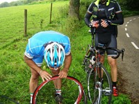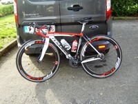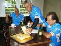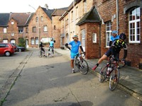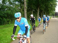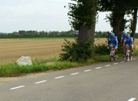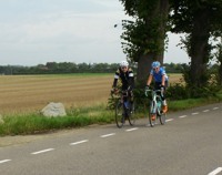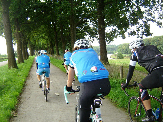 De voorziene rit van Walter naar Henri Chapelle werd vandaag niet gereden omwille van het doopsel van zijn kleindochter Charlotte. We improviseerden dus een vervangrit en deze bracht ons naar Valkenburg. Emidio als baankapitein voerde de ploeg aan en we reden richting As. Aan de Bascule kwamen we leden het Skellet-team tegen die meereden tot aan het stationnetje in As. Wij vervolgden onze rit via Maasmechelen, Beek en Valkenburg, waar we de Valkenier beklommen en dan weer de Bemelen omlaag. In de afdaling reed Pieke lek met een dikke snap in de buitenband als gevolg. Door een Mc Gyver onder de leden werd het lek voorlopig gedicht met wat plastiek, in de hoop dat we hiermee tot thuis zouden geraken. Een nieuwsgierige bezoeker (het paard in de wei haha) hield alles nauwkeurig in de gaten. We reden verder naar het centrum van Maastricht en zo via Lanaken en Zutendaal terug naar de thuisbasis. Hector die vandaag op zijn ééntje een klein ritje ondernam en dit totdat de klimritten achter de rug zijn, vervoegde ons nadien in ons clublokaal om samen met zijn ‘vrienden’ van een lekker broodje en een pint te genieten.