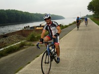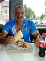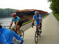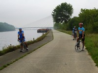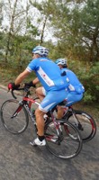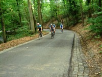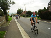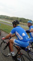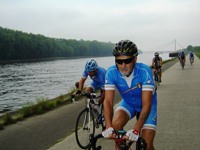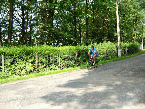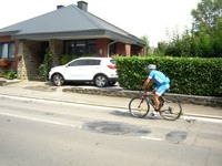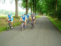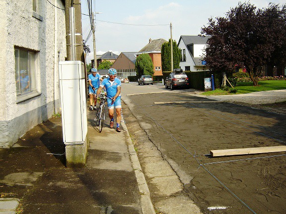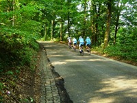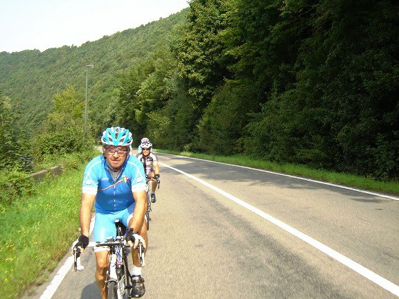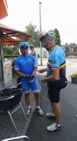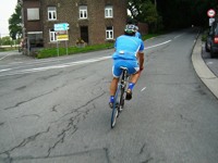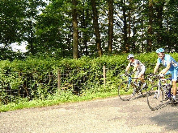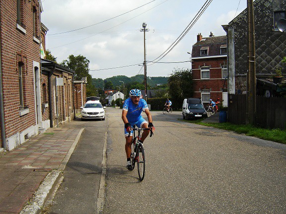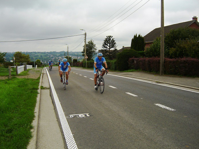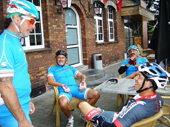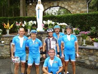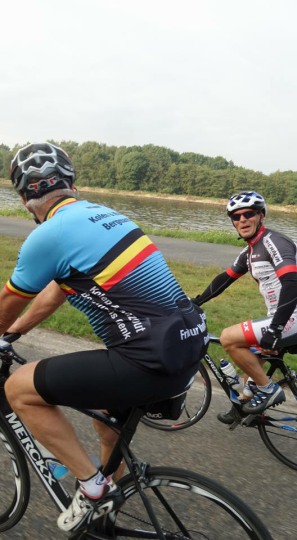 Het zonnetje was van de partij en baankapitein Emidio had pittige klimmetjes uitgestippeld. We vertrokken richting Zutendaal naar Visé en genoten van het prachtige uitzicht op de Maas. Onze eerste klim was de Richelle en Pieke had het vandaag goed in de benen en gaf het tempo aan. Nu volgden een aantal klimmetjes achter elkaar: Blégny, Soumange, Chaudfontaine. De laatste klim van 5,8 km en dan kwamen we aan in Banneux. Hier werden onze bidons bijgevuld met heilig water en een kaarsje aangestoken voor een veilige trip. Nu was het tijd om onze magen te vullen met een lekkere ‘dagobert’ - het bekende broodje van Banneux - en door te spoelen met een fris drankje. Toch moesten we onze route verderzetten en nog een laatste klim trotseren, de Steengroeve. Op de terugweg hadden we wel af te rekenen met een flinke wind maar raakten toch veilig en wel thuis.