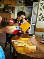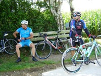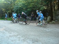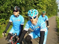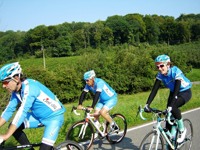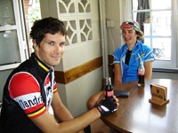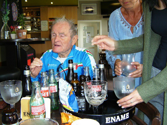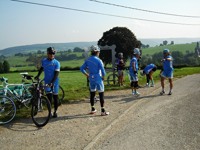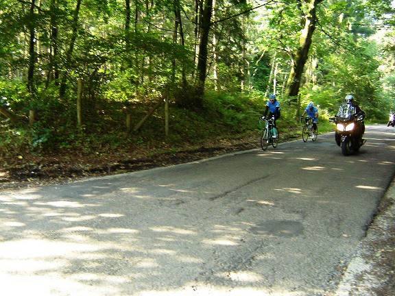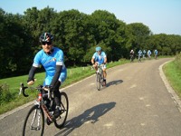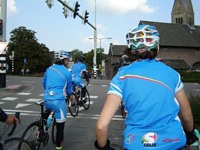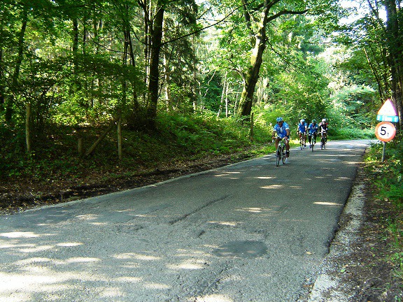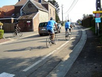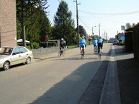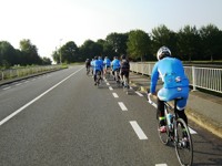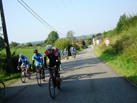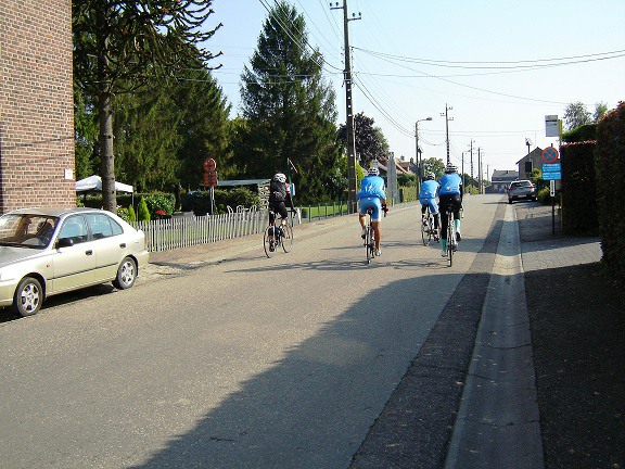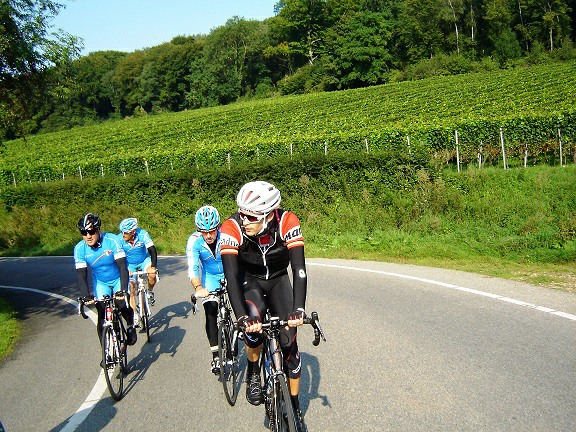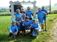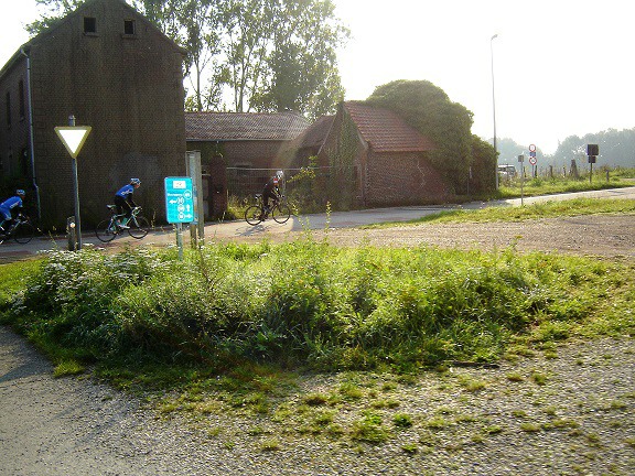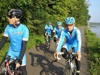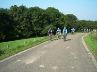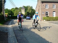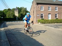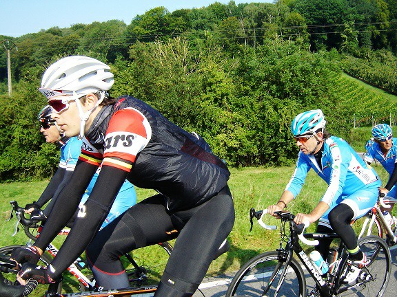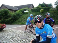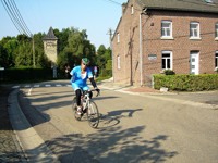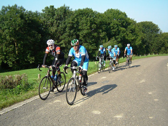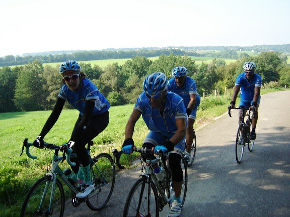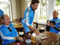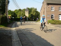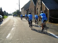 Baankapitein Charlotte was ‘back’ in topvorm. Versterkt door haar vriend Jochen, had ze voor ons een flinke rit uitgestippeld naar Voeren. Om 8u30 vertrokken we vanuit ons clublokaal richting Zutendaal en vervolgden de rit naar Teuven. Al gauw kwamen de eerste klimmetjes in zicht en natuurlijk ook de eerste ontsnappingen, maar toch slaagde het peloton er steeds in deze snelle jongens in te halen om zo de toppen te bereiken. Verder reden we naar Epen en juist voor de Bemelen hielden we een stop bij een mooie perenboomgaard en werden de nodige porties vitaminen ingenomen en meegenomen voor later … een appeltje - of beter een peertje - voor de dorst. Mmmm, lekker! Nu de Bemelen af en zo richting Maastricht en Lanaken terug huiswaarts. We hebben genoten van deze pittige rit en des temeer genoten we nadien van broodjes en lekker bruin bier.
