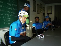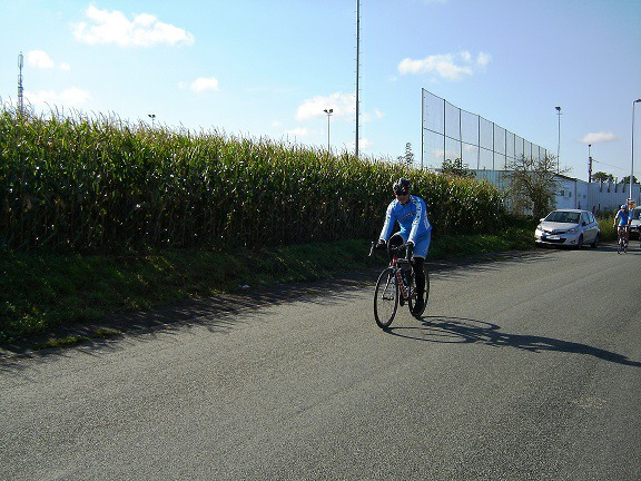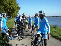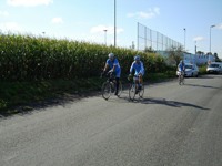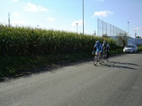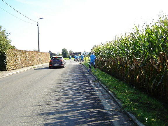 Baankapitein Emidio en zijn hulpkapiteins hadden vandaag het ritje “de 8 van Bilzen” uitgestippeld met 4 cols op het programma. Aan een rustig opbouwend tempo vertrokken we richting Zutendaal. De weg werd langs het kanaal verder gezet naar Visé en de Hallenbaye kwam vlug in ‘t zicht. Ook de Richelle ontbrak niet, waar Jochen en Charlotte een stevig tempo inzetten. Intussen werden ook de zondagse mooie plekjes in het landschap gefotografeerd. We vervolgden onze route richting Emael en Dalhem en zo de laatste klim naar Visé waar Tony een poging ondernam om te ontsnappen. Intussen werd hij door het peloton ingehaald en met een groepje van vijf man bereikten we de top. Even wachten op de rest en dan verder door het Centrum van Visé. Nu met wind in de rug langs het kanaal terug huiswaarts. Charlotte behaalde vandaag de bolletjestrui en met de hulp van haar kopman Jochen behaalde ze uiteindelijk ook de groene trui. Proficiat aan allebei!