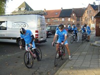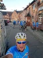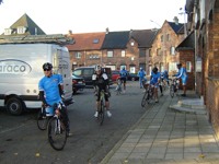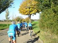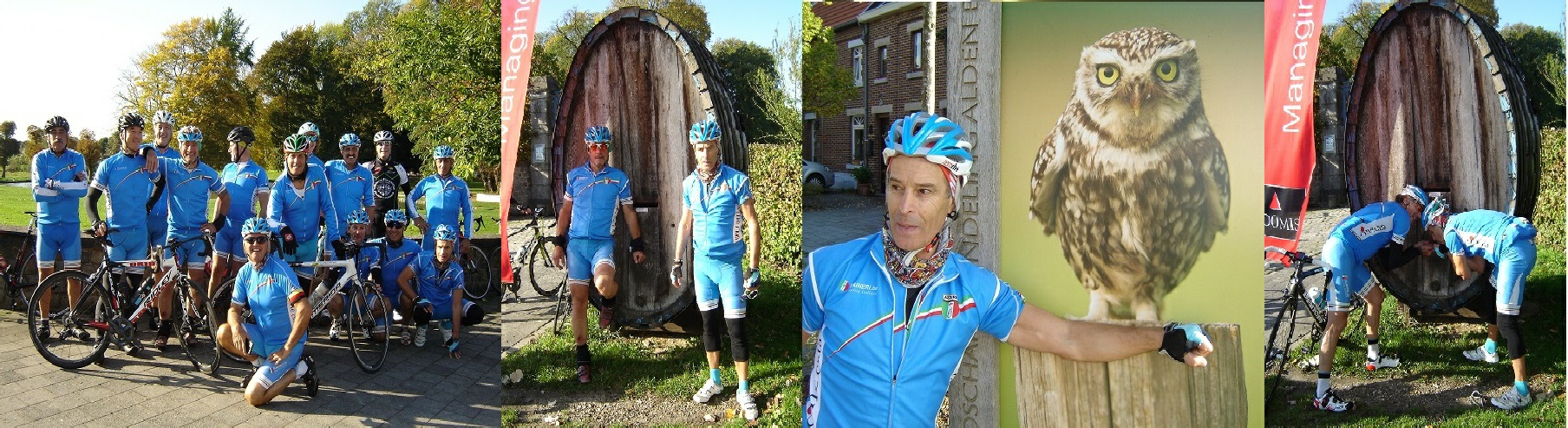 Schitterend weer vandaag voor onze zondagsrit naar Sluizen, onze laatste klimrit van het seizoen. Bijna voltallig vertrokken we om 9 uur richting Zutendaal en zo verder naar Riemst. De eerste kleine klimmetjes kwamen we in Boirs tegen. Dan trotseerden we de langere klimmen in Borreberg. Het was vandaag het moment om de laatste punten binnen te halen voor de bolletjestrui en Charlotte ging wederom met de eer lopen. In Bilzen hielden we een pitstop en werden mooie foto’s genomen in het domein van Alden Biesen. Palm kon hier een reuze uil temmen en anderen konden zich laten gaan bij de reuze wijntonnen. Nadien was het tijd om terug huiswaarts te fietsen en te genieten van iets lekkers fris. Dit was nodig door deze warme, zonnige herfstdag.