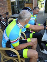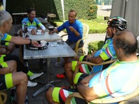 De rit van vandaag naar Valkenburg werd in goede banen geleid door kapitein Emidio. Ondanks het slechtere weer van de voorbije dagen, was het vandaag mooi fietsweer. We vertrokken richting As, Maasmechelen en reden zo verder naar Valkenburg. Ditmaal zijn we het centrum niet ingereden, maar hebben gekozen om naar de Slingerberg te rijden. Medile was in vorm en kreeg iedereen mee; halverwege verhoogde Charlotte het tempo en kreeg Jochen en Walter mee en uiteindelijk was het Walter die de bergtui behaalde en Charlotte kon alweer de groene trui aantrekken. Onze Medile zou bij een volgende rit weer toeslaan!! Dus opgelet voor de haai van Tropea.
