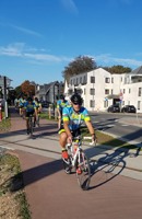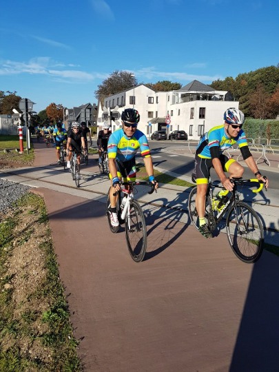 Valkenburg stond vandaag op het programma met als baankapitein Emidio maar omwille van de verkiezingen werd beslist later te vertrekken en de rit in te korten. Gerald mocht als kapitein de ploeg leiden en had dan een ritje uitgestippeld over Kattevenia, Zutendaal, Gellik, Lanaken en zo terug huiswaarts. De vooropgestelde vlakke rit werd uiteindelijk toch met enkele pittige hellingen doorweven. We fietsten langs mooie, droge fietspaden maar moesten toch attent zijn voor de vele “eikels” op de rijbaan. Opgelet voor slipgevaar!