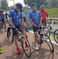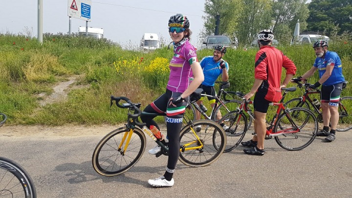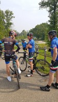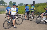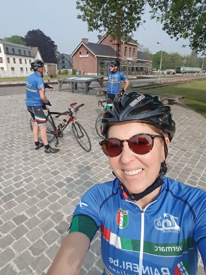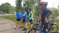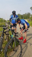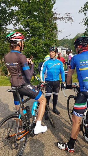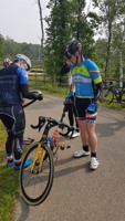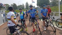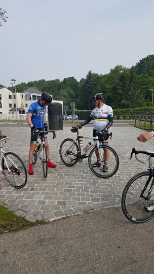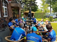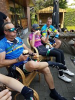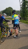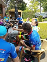 We vertrokken onder leiding van Jochen richting As, waar we Conny en Piet oppikten. Dan verder naar Maasmechelen en zo naar de Slingerberg waar Koen, Franco, Walter, Emidio en Charlotte op een snel tempo de klim opreden. Alhoewel Koen 3 weken uitgelegen heeft door een kleine ingreep, loste hij de groep niet. Uiteindelijk kwam Charlotte als eerste over de eindstreep. Na een lange afdaling kwamen we uit op de Visweg waar Koen en Franco weer demarreerden, maar snel door Walter en Emidio werden ingehaald. Op deze klim was de zege voor Walter.