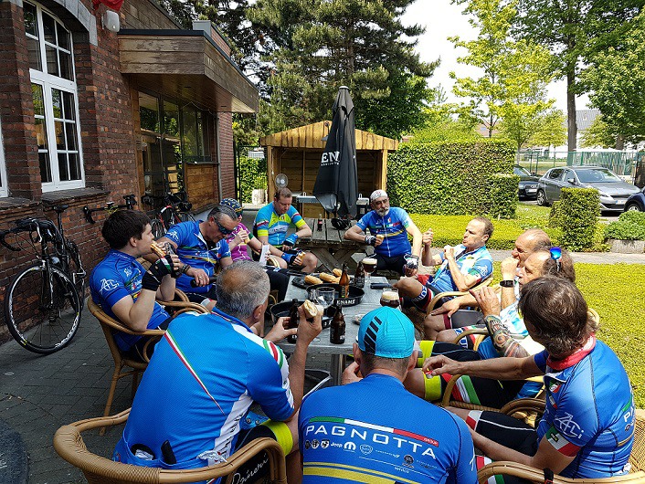 Thuisgekomen in ons clublokaal stonden de broodjes klaar die doorgespoeld werden met een lekkere, frisse Ename. Salute!