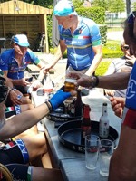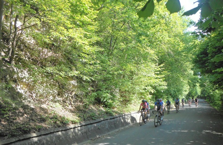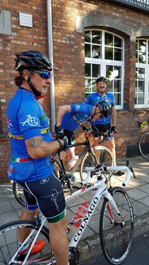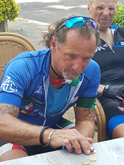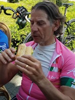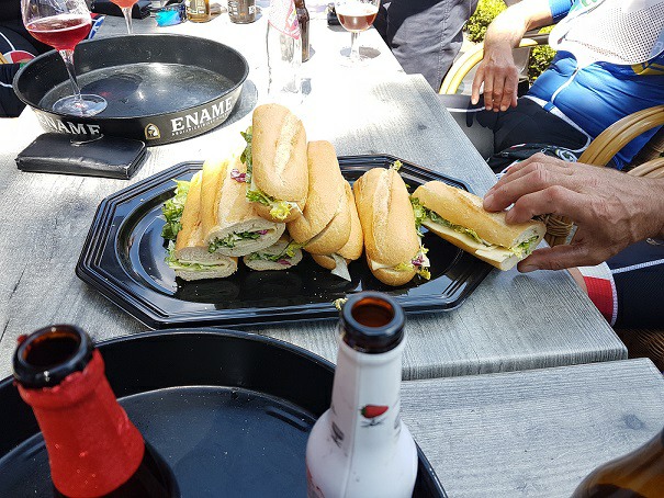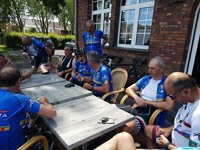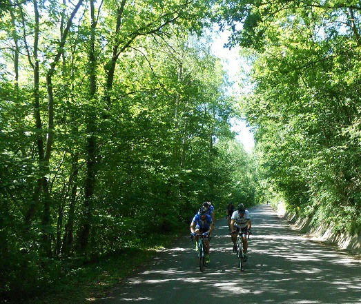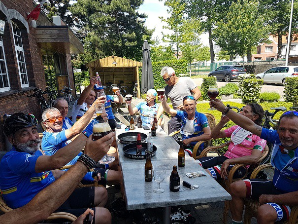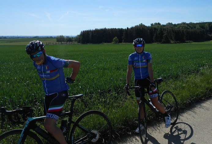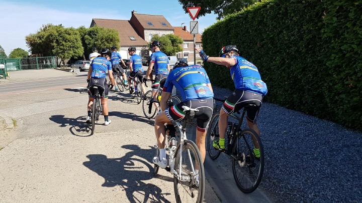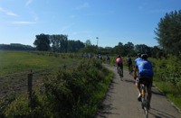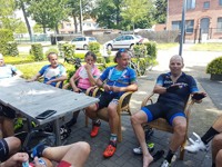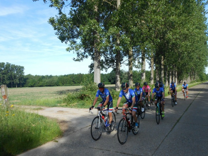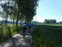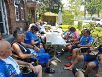 Het tempo zat zoals vorige week heel goed - was zeker te wijten aan het mooie weer - en we reden verder naar Eigenbilzen, Kanne, Gellik en dan de klim van de Lanaye. Hier maakte Gerald enkele mooie foto’s van de sprinters en de hele groep. Nu even een kleine pitstop en dan werd de rit verder gezet naar de Slingerberg. Het begon al snel warm te worden en iedereen snakte naar een verfrissende pint; dus nog even volhouden en via Bilzen een versnellingske bijsteken om huiswaarts te keren.
