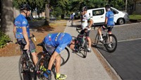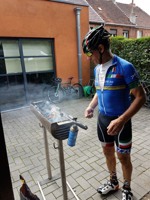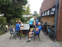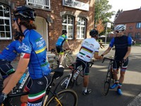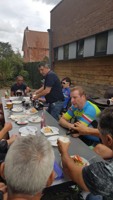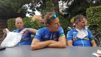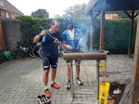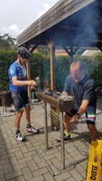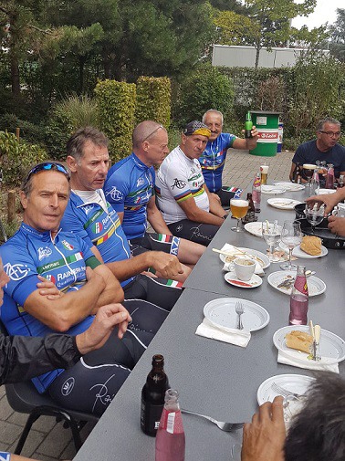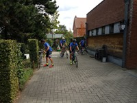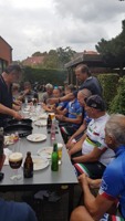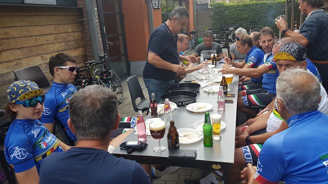 Vandaag vertrokken we voor een rit van 60 km waarna bij binnenkomst een vergadering en een stokjesfestijn gepland was. Met een dertiental Azzurri’s reden we richting Bokrijk waar er door het water werd gefietst en dan verder richting het jaagpad van het Albertkanaal. Na een vijftiental km werd er de brug overgestoken en deden we een stukje van het parcours naar Scherpenheuvel. Dan ging het via knooppunt 304 en 311 richting Helzold en achter de mijn van Heusden-Zolder door. Via het fietspad van de Waegemanskeel en de Hengelhoefstraat waren we omstreeks half twaalf binnen. Pieke ging dadelijk aan het werk voor het aanmaken van de BBQ en intussentijd hadden we een pittige vergadering ivm onze tweedaagse uitstap naar Zeeland en de “Nove Colli” van 2020 en kregen we de juiste informatie hieromtrent zodat enkele misverstanden werden rechtgezet. Hopelijk zit nu iedereen weer op dezelfde golflengte en waardeert men het mooie werk dat het bestuur levert. Nadien volgde er een lekker pintje, heerlijke stokjes en salades en werden. Pieke bedankt om weer eens de kok van dienst te zijn en bedankt allemaal voor de mooie dag en op naar de volgende rit .