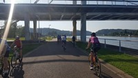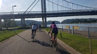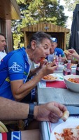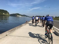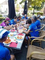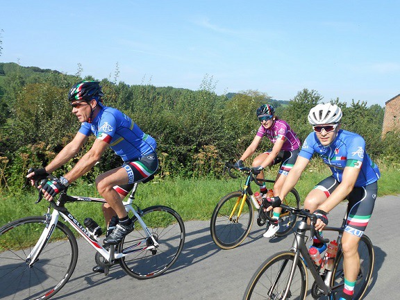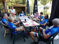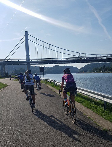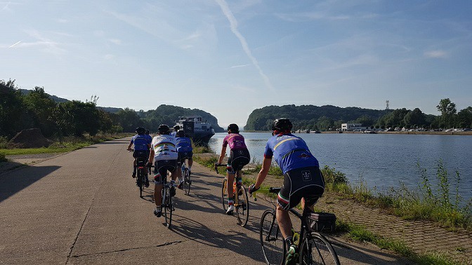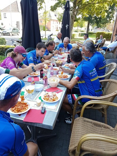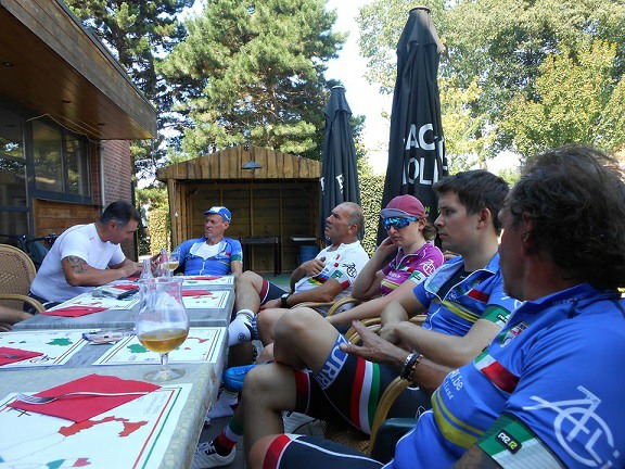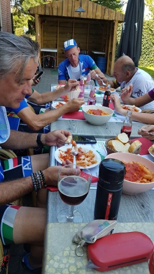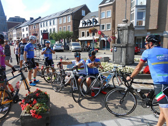 Met tien Azzurri’s leidde baankapitein Emidio ons richting Aubel onder een heldere hemel. Via Genk naar Zutendaal en daar via het jaagpad langs het Albertkanaal. Daar was een grote volkstoeloop want de nieuwe brug werd er geplaatst over het Albertkanaal De koelte die de mergelwanden afgeven deden deugd. Na het jaagpad gingen we de Voerstreek in naar de eerste klim van de dag de Swaen, waar enkele rijders ondervonden dat die langer was dan verwacht. Boven werd er gewacht en dan de afdaling naar Aubel waar er een marktje was en de terrasjes goed gevuld waren. Via de weg naar Valdieu en dan verder langs de Dalweg richting Dalhem. Daar reed Franco voor de eerste maal lek dit jaar! Na dit oponthoud ging het richting Visé. Terug op het jaagpad werd er een goed tempo onderhouden zodat we thuiskwamen met een mooi gemiddelde. De brug stond ondertussen ook op zijn plaats. Aangekomen aan de Acli werden de dorstige kelen gespoeld en was er een aangename verrassing onder de vorm van een lekkere pasta waarvoor we hen erg dankbaar zijn. Na een leuke babbel gingen we huiswaarts, de vriendschapsband weer wat aangehaald van onze leuke fietsclub. Volgende week beginnen we aan de laatste twee maanden van ons fietsseizoen. Wat gaat de tijd toch snel voorbij.