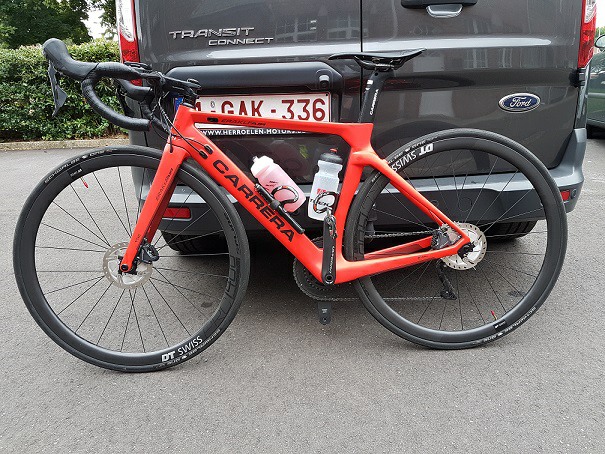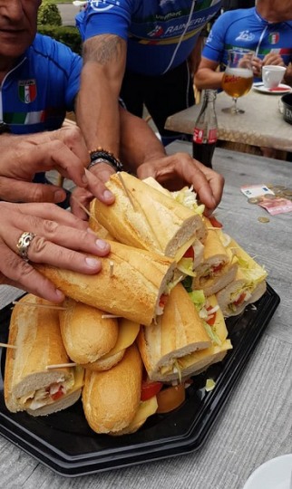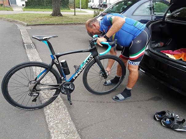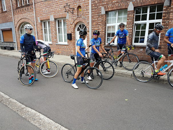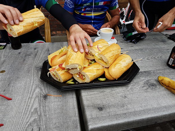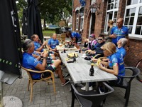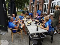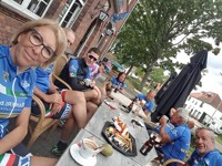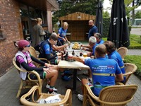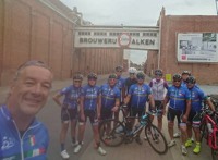 Na het nieuwe speeltje van Franco bewonderd te hebben vertrokken elf Azzurri’s voor een rit van 85 km richting Alken. Via het jaagpad ging het richting Kuringen brug en daar verder langs knooppunt 238 de achterkant van Herckenrode. Verderop in de rit over autoluwe wegen ging het richting Haspengouw. Enkele leden konden niet weerstaan aan het mooie fruit dat aan de bomen hing. Met drie korte stukjes onverhard tijdens de rit werd ook Franco's nieuwe fiets ingewijd. De nieuwe lus die ik had ingelegd ging over mooie wegen richting Zepperen. Daar ging het fietspad evenwijdig met de grote weg Hasselt-Sint Truiden. De afslag genomen naar Alken waar de groepsfoto genomen werd met het logo van de brouwerij op de achtergrond. Vanuit Alken ging het door de mooie wijk richting Diepenbeek. Daar werden enkele mooie wegen genomen en reed ik ook verkeerd zodat we in Hasselt uitkwamen. Dankzij de feedback van Koen reden we dan richting Godsheide waar de eerste echte spurt bergop plaatsvond; deze werd gewonnen door Jochen. Dan verder door naar de Acli waar de broodjes op ons lagen te wachten en de kelen gesmeerd werden. Na een leuke rit keerden we allen tevreden naar huis.