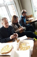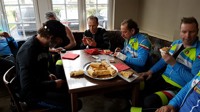 De broodjes waren top en de taart van Peter, die aanstaande dinsdag 52 kaarsjes mag uitblazen, smaakte heerlijk.