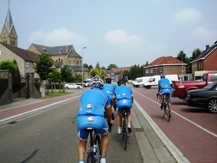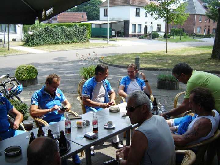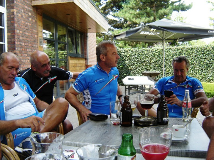 De rit van vandaag, met baankapiteins Tonino en Emidio, ging naar Aubel. We vertrokken richting Herderen en zo naar Saint Semillon langs de steile kant. Er volgde een snelle afdaling en enkelen maakten hiervan gebruik om te ontsnappen, aangetrokken door Tonino. Na de afdaling verzamelde iedereen zich en werd de rit vervolgd richting Visé en op naar onze volgende klim naar Aubel. Na de beklimming rijden we door het mooie centrum en zo verder weer richting Visé om zo langs het kanaal huiswaarts te fietsen. Walter heeft vandaag regelmatig ook kop gereden om zo de kopmannen wat te ontlasten. Zelfs Hector was vandaag goed in vorm en nam tegen het eind van de rit ook de kop over.